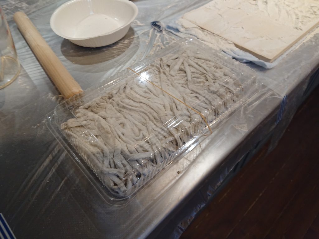 善光寺近くのお蕎麦屋さん、今村そば本店の今村さん、丁寧に教えて頂いて・・・捏ねるが上手く行かないし、生地を伸ばす作業は極薄になって破けてしまったり・・・んー中々難しい❗